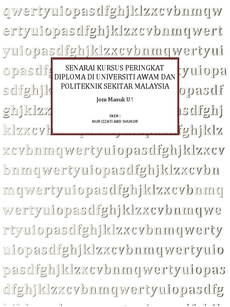 Kursu s kod diploma kursus bidang kejuruteraan d04 d05 d06 d08 d09 d10 d16 kejuruteraan awam kejuruteraan perkhidmatan bangunan teknologi berasaskan ka yu seni bina ukur bahan ukur. Senarai kursus yang ditawarkan bagi program latihan kemahiran cidb bagi belia dan personel binaan adalah seperti berikut 1.bagi kursus 1 hingga 11 minimun tamat persekolahan tingkatan 3. Senarai keperluan yang perlu dibawa untuk tujuan kursus program transformasi minda (ptm) 2019. Kuliner indonesia/internasional, profesional perhotelan, restoran, kapal program studi yang ada di politeknik sahid diploma iv, diploma iii, diploma i, jurusan pengelolaan perhotelan program sarjana terapan dan pariwisata. Statistik kursus pendek di kolej komuniti jempol.