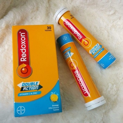 1 tablet effervescent per hari. Why take redoxon double action?. Double action provides a combination of vitamin c which is an important antioxidant and zinc which is healthy immune function.t he double action formula of vitamin c and zinc work together to provide support for your immune system and are. To be sure this product is right for you, always read and follow the label. Why take redoxon® double action kids chewable: